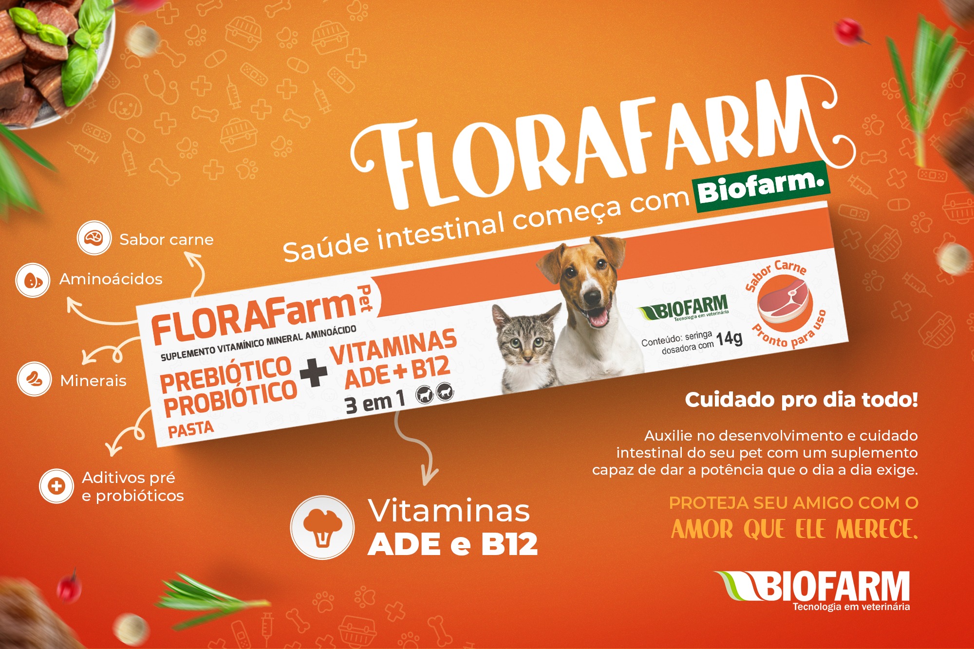 Novidade Biofarm! A Biofarm lançou recentemente no mercado a sua nova linha de pré e próbioticos para pets, o FLORAFarm….