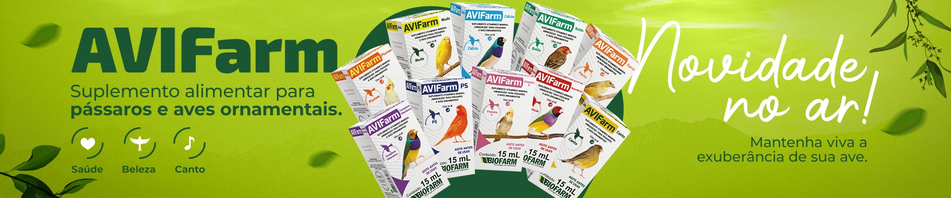 A Biofarm anuncia mais uma novidade: o AVIFarm, uma linha completa de suplemento alimentar para pássaros e aves ornamentais que precisam de suplementação de vitaminas, minerais e aminoácidos, ainda mais quando se busca elevar o potencial do animal.